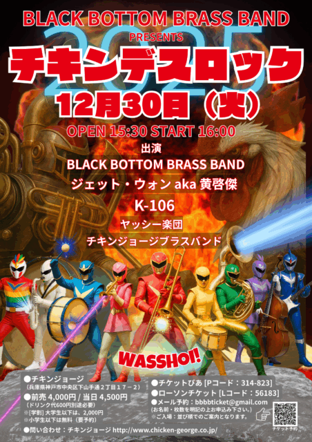 BLACK BOTTOM BRASS BAND、ジェットウォンaka黄啓傑、K-106、opening act:チキンジョージブラスバンド、ヤッシー楽団