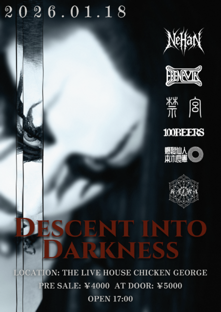 出演:涅槃 / 禁宮 / 本木良憲 / EBENAVIA / KALRA / 100BEERS 出店:神戸BAR IKUTANOMORI