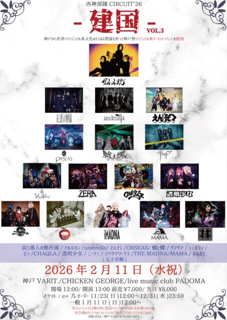 アルルカン/哀と凛人の無所属/umbrella / えんそく/ORSEAS/蛾と蝶/ザアザア/シェルミィ/ゼラ/CHAQLA./透明少女/ニーチェ/マツタケワークス/THE MADNA/MAMA./まみれた/RAN