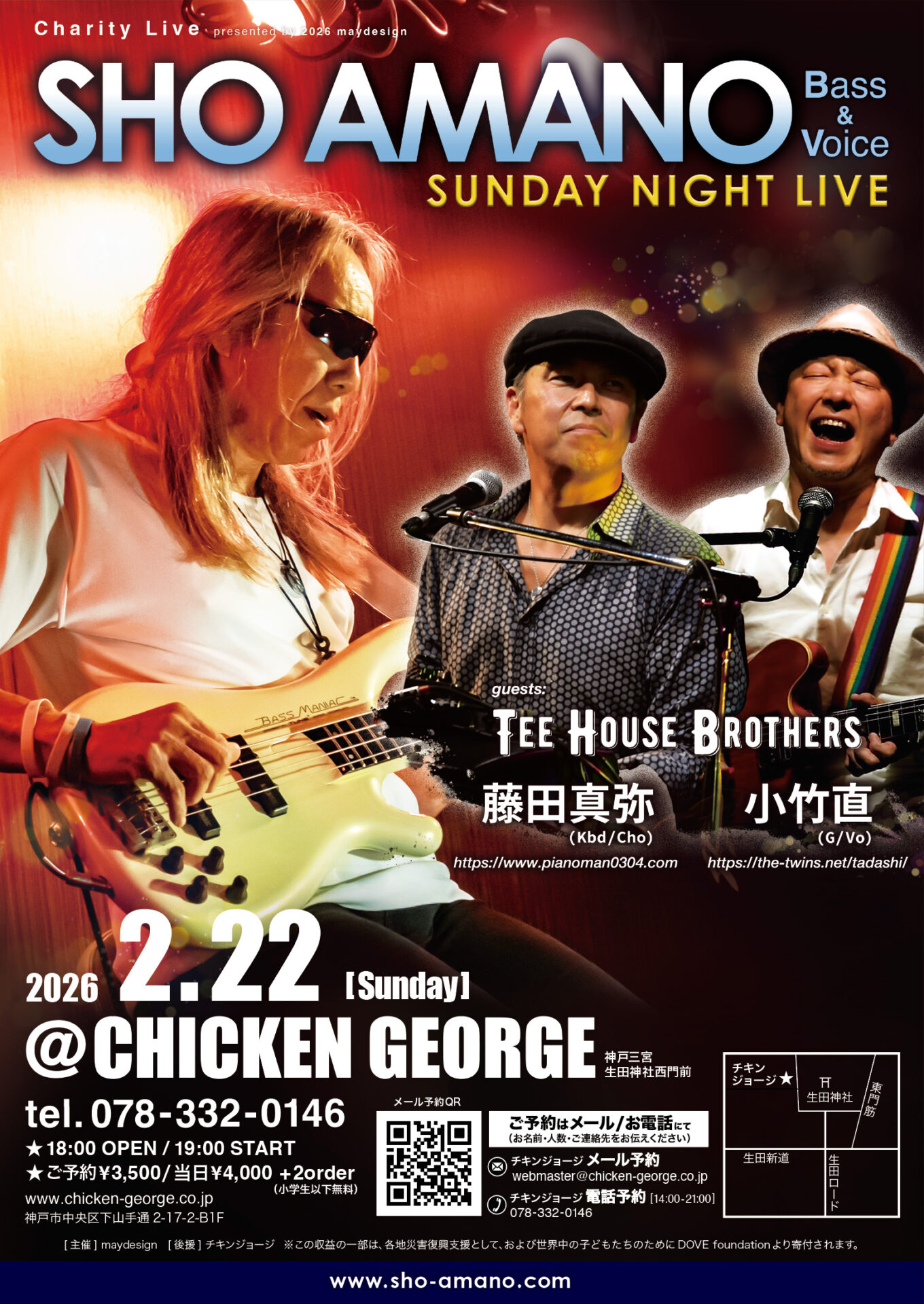 SHO AMANO (Bass & Voice) ★guests:Tee House Brothers 【小竹直(G/Vo) 藤田真弥(Kbd/Cho)】