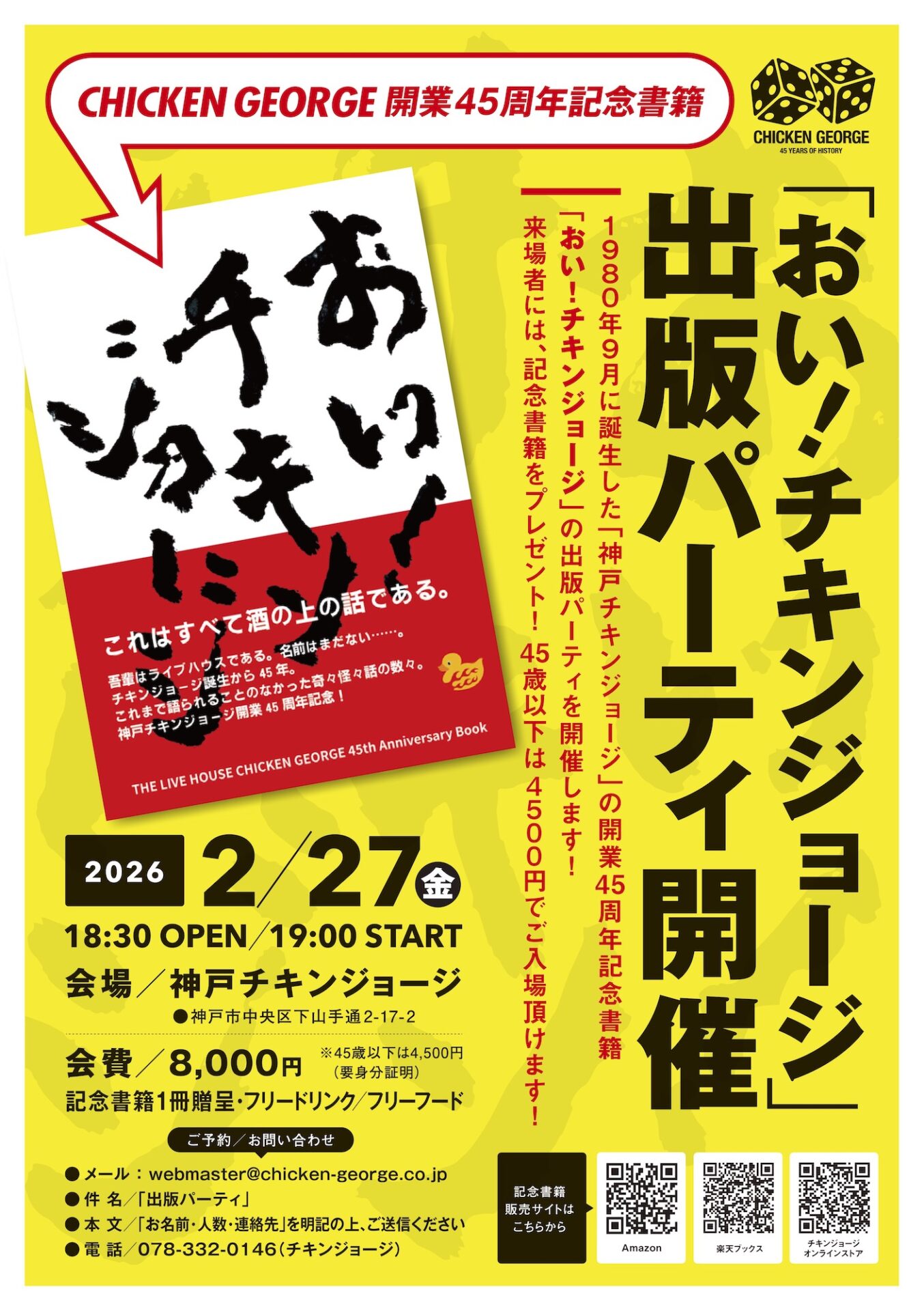 1980年9月に誕生した「神戸チキンジョージ」が、今年開業45周年を迎え、記念書籍を出版します!