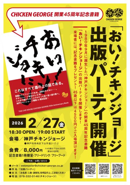 「おい!チキンジョージ」出版記念パーティーを開催します!