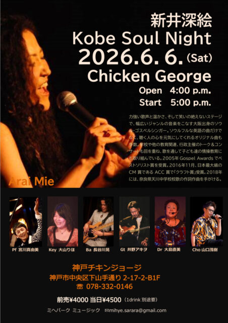 vo 新井深絵/ ピアノ 宮川真由美/ キーボード 大山りほ/ ベース 長谷川晃/ ギター 井野アキヲ/ ドラムス 大島直美/ コーラス 山口茂樹