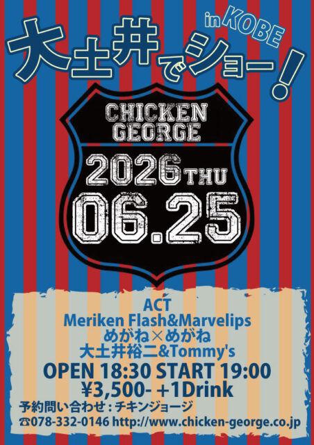 ・チキンジョージ電話予約 078-332-0146 ご予約の際、公演日・お名前・人数・ご連絡先をお伝えください。 |